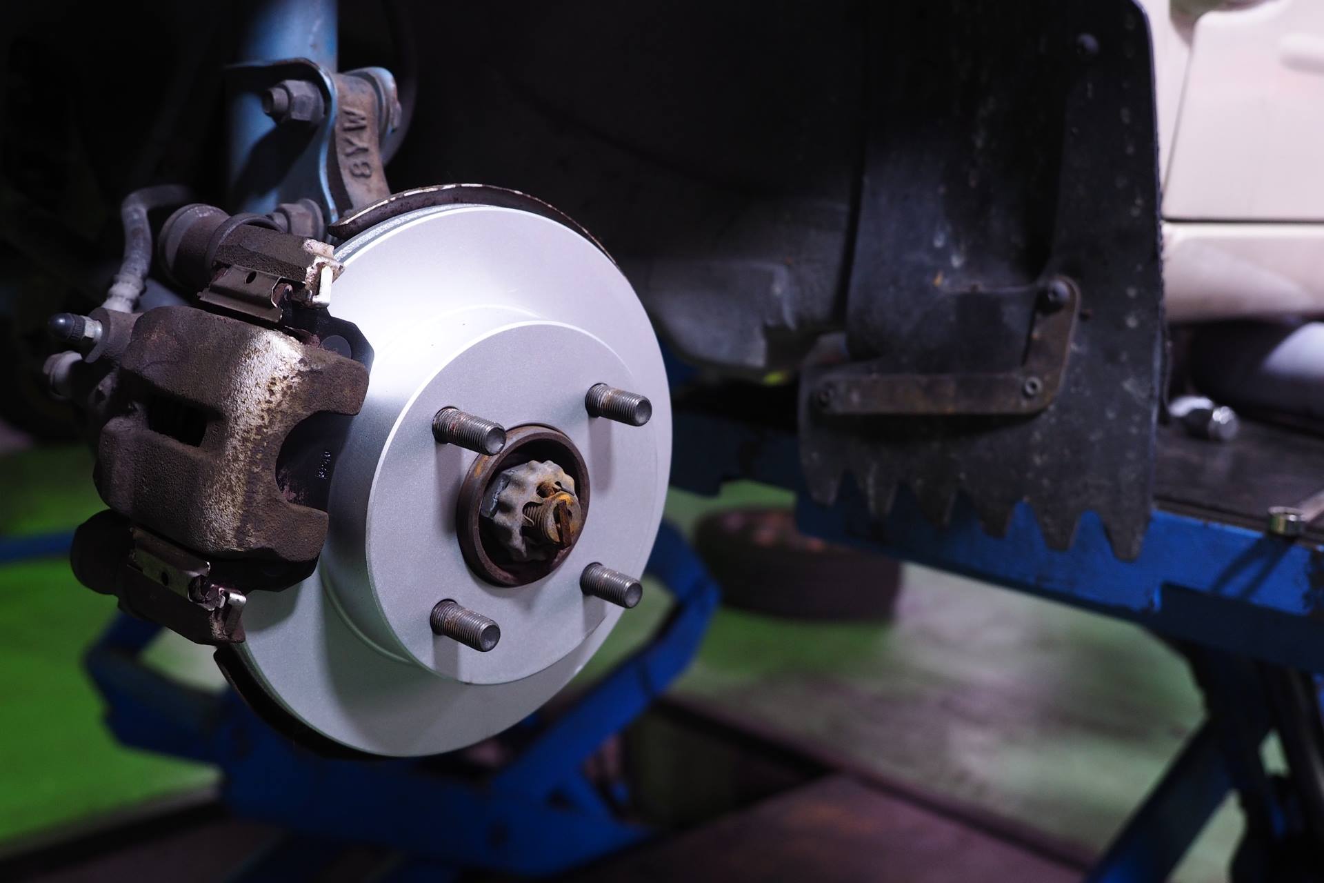 どうせリフトアップするなら、前回の車検時にブレーキパッドの残量が少なかったので、診察と同時に交換してもらおうと企んでました。