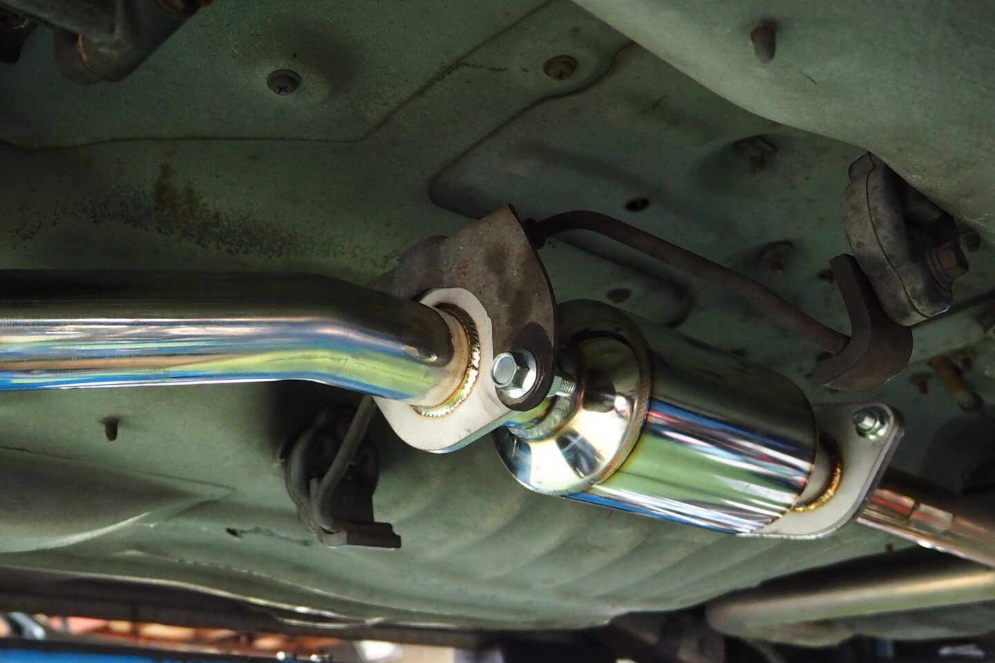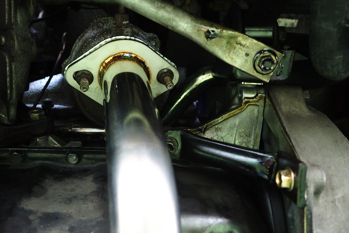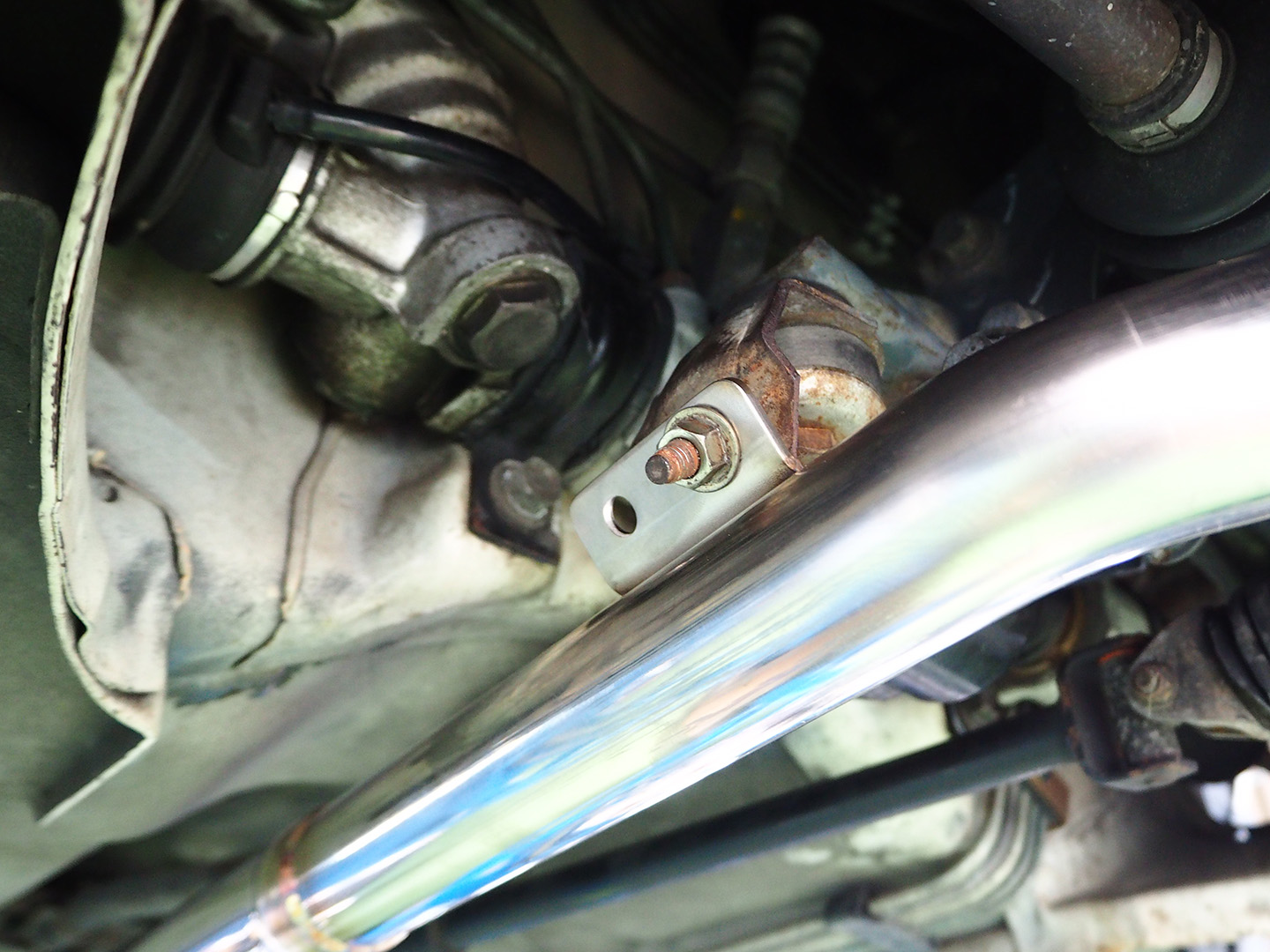 フロントパイプの取り付けは、MT車とAT車でネジの位置に違いがありますが、どちらでも問題なく取り付けできます。